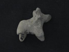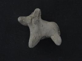 | Description / विवरण | Trench ZB1, Qdt-2, LxB-D 6.75 mtrs x 4.68 mtrs - 5.30 mtrs at peg B1, Stratum Pit 4 sealed by Layer 7 This is a bull figurine made of baked clay. One leg is damaged. Surface is smooth. Horns are also present. Many irregular marks all over the surface. Little damaging can also be seen on object. Appearance is of greyish brown colour. |