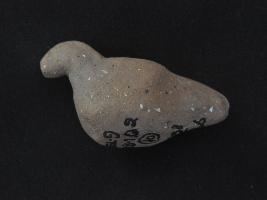 | Description / विवरण | Trench ZB1, Qdt-2, LxB-D 9.10 mtrs x 3 mtrs - 3.65 mtrs at peg B1, Stratum Layer 10 It is a bird figurine made of baked clay. It was quite high artistic value. It might be used as play toy or showpiece. Surface is quite smooth and fine. Appearance is brick brown. |