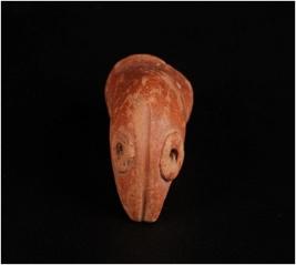 | Description / विवरण | Terracotta bird head. The fragment is red in colour. It has applique eyes with pin holes and mouth is suggested with a small incise and beaked mouth. |