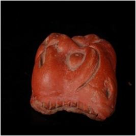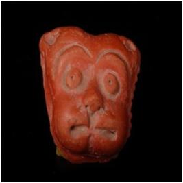 | Description / विवरण | Handmade terracotta fragment of face represent mask. Resembling from monkey. Incised eyebrows, round pellet pierced eyes, flat nose, with pierced nostrils. Slit mouth, round cheeks and grooved border, red slip and hollow from inside. |