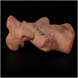 | Description / विवरण | Terracotta handmade composite figurine with bust of goat head, legs & arms are missing. Pinhole on head ears are visible with grooved decoration, pinched mouth and red slip. |