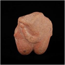 | Description / विवरण | Terracotta handmade female bust with applique necklace, shoulders, head and arms are missing. Prominent breast, red in colour. |