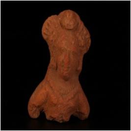 | Description / विवरण | Handmade terracotta female bust. Jewelled crown, ornamented. Features of face are visible, incised eyes and lips, broken nose and arms, red in colour. |