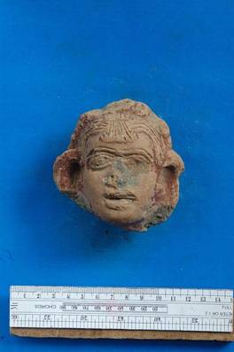 | Description / विवरण | Terracotta head having wide and deep ears. Nose and left eye damaged. Traces of brown paint exist on the face. |