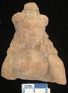 | Description / विवरण | Terracotta bust of a female bearing coifer, lips, nose and breast are very clearly depicted. Both the hands are broken, lower portion is missing. |