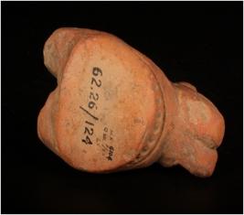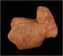 | Description / विवरण | Terracotta handmade fragment of elephant figurine with deep incised lozenge eyes and circlet on it, incised decoration on head and neck. Stumpy and thick legs,eroded mouth. |
