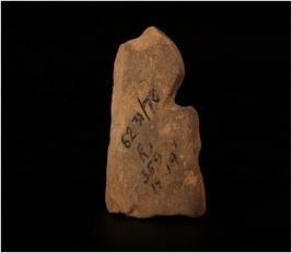 | Description / विवरण | Terracotta moulded bust of female figurine with incised eyes and mouth wearing double necklace and ear ornament. Incised decoration on headgear and circular breast. |