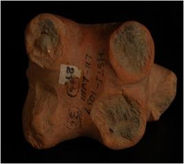| Description / विवरण | Terracotta handmade fragment of animal figurine with pinched ears, snout and leg is partly eroded , partly visible incised design around tail. |