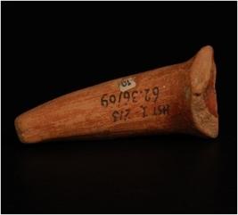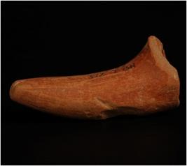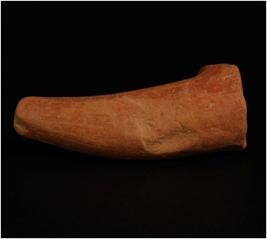 | Description / विवरण | Terracotta handmade fragment of animal leg appears to be tapering in size with a incised mark on base. |