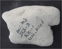 | Description / विवरण | Trench EX-1, Stratum Unstratified Object identified as fragment of human figurine, depicting waist portion, made of sun baked clay, having rough, uneven and muddy surface. |