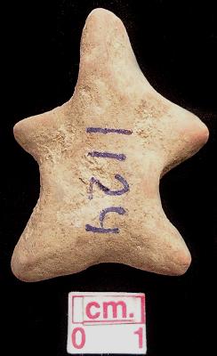 | Description / विवरण | A terracotta archaic human figurine with elongated head, short out stretched stumpy arms, short wide bridged stumpy legs, handmade. |