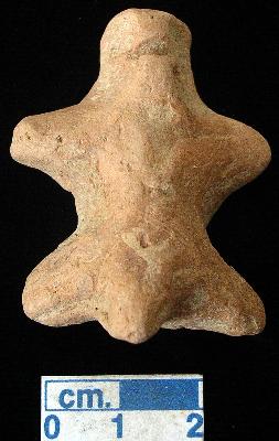 | Description / विवरण | A terracotta archaic male figurine with round head, punched eyes, pinched nose and slit open mouth, short out stretched stumpy arms, phallus indicated, short wide bridged stumpy legs and treated with red wash. |