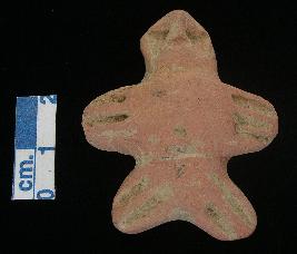 | Description / विवरण | An archaic human terracotta figurine, red, pinched nose and split mouth, tiny hands and legs with two incised lines , pin hole eyes, handmade. |