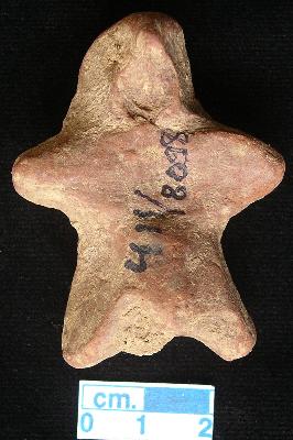 | Description / विवरण | An archaic male terracotta figurine with round head, red, pinched nose, short out stretched arms , shrot wide bridged stumpy legs, punched eyes, handmade. |