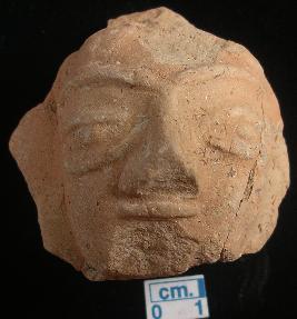 | Description / विवरण | Terracotta head of Buddha lozen eyes, prominent nose but nostrils lower lip and chin damaged, left ear and upper for head is slightly damaged. |