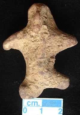 | Description / विवरण | An archaic human terracotta figurine with round head, dull red, pinched nose, short out stretched arms, shrot wide bridged stumpy legs, handmade. |