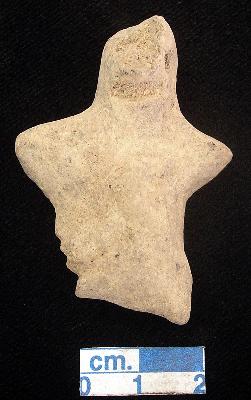 | Description / विवरण | A star shape archaic human terracotta figurine with broken face, dull red, broken nose, punched eyes, open slit mouth, short out stretched arms, short legs but the right one is broken, handmade. |