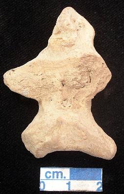 | Description / विवरण | A star shape archaic human terracotta figurine with round head, red, pinched nose, punched eyes, open slit mouth, short out stretched arms but the left one is broken, traces of navel, short wide bridged stumpy legs but the right one is partly broken, treated with red wash, handmade. |