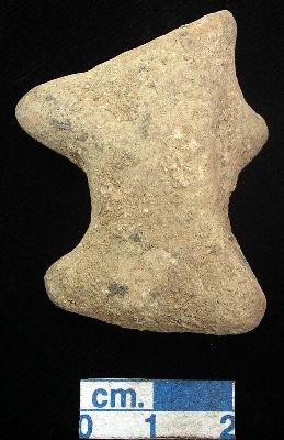 | Description / विवरण | A terracotta archaic human figurine with damaged head, short out stretched stumpy arms of which left one very small, short wide bridged stumpy legs, red. |