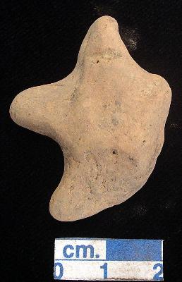 | Description / विवरण | A small star shaped terracotta archaic human figurine with conical head, punched eyes, pinched nose, open slit mouth, short out stretched stumpy right arm and wide bridged short stumpy right leg is prominent where as left portion of the figurine is damaged from left arm, punched navel, dull red. |