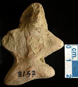 | Description / विवरण | An archaic human terracotta figurine, red, punched nose, pinched eyes, short out stretched arms and legs, handmade. |