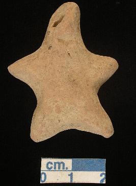 | Description / विवरण | An archaic male terracotta figurine, red, pinched nose, stretched arms hands and short wide legs , punched eyes, handmade. |