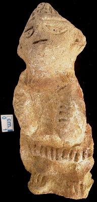 | Description / विवरण | Terracotta human figurine wearing kardhani decorated with incision, finger nail and feet are also depicted by incisions eyes, eyebrows and mouth is depicted by incision, wearing turban decorated with incised designs. |