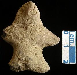 | Description / विवरण | A terracotta archaic human figurine with round head , dull red, punched eyes, pinched nose and mouth, short out stretched arms but the right one is broken, short wide bridged stumpy legs but the right one is broken, devoid of any surface treatment, handmade. |