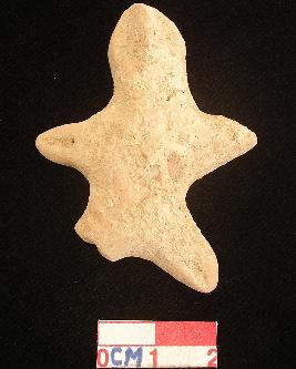 | Description / विवरण | An archaic human terracotta figurine, red, pinched nose and open slit mouth,ellongeted haead, short out stretched arms and short wide legs with one incised line in each, punched eye, handmade. |