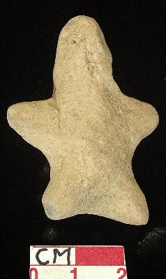 | Description / विवरण | A star shaped terracotta archaic human figurine, with partly damaged round head, dull red, hand made, pin hole eyes, pinched nose, mouth, short out stretched stumpy arms, pin hole navel, short wide bridged stumpy legs, devoid of any surface treatment. |