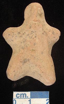| Description / विवरण | An archaic terracotta human figurine, red, hand made, pinched nose, slit mouth, pin hole navel, tiny arms and legs,flake marks on its right side of face. |