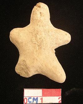 | Description / विवरण | An archaic male terracotta figurine, red, pinched nose and open slit mouth, round haead, short out stretched arms and short wide legs, punched eye, phallus indicated, handmade. |
