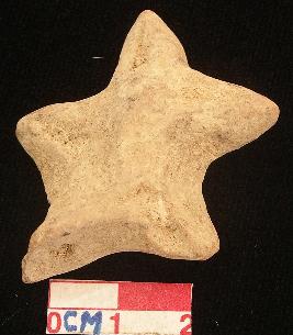 | Description / विवरण | A star shape terracotta archaic human figurine with pinched head of which right part is damaged, punched eyes and pinched nose, out stretched stumpy arms with one incised line, wide bridged stumpy legs bears one incised line each, treated with red wash. |