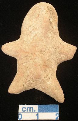 | Description / विवरण | A star shaped male terracotta figurine with rounded head,punched eyes, pinched nose, short out stretched stumpy arms, pin hole navel, short wide bridged stumpy legs, phallus indicated, treated with red wash. |