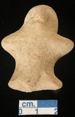 | Description / विवरण | An archaic terracotta figurine with rounded head, pin hole eyes, pinched nose, slit open mouth, short out stretched stumpy armsl, short wide bridged stumpy legs, phallus indicated. |