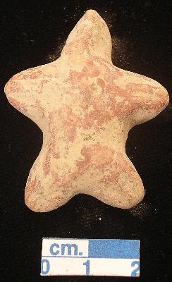 | Description / विवरण | A star shaped archaic terracotta figurine with round head, punched eyes, pinched nose, slit open mouth, short out stretched stumpy arms with two incised lines in each, short wide bridged stumpy legs with two incised lines in each. |