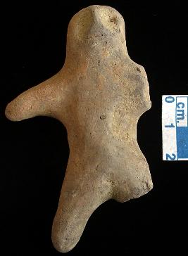 | Description / विवरण | A terracotta archaic human figurine with round head, dull red colour, pin hole eyes, pinched nose and slit mouth, long out stretched stumpy arms left one is totaly broken, pin hole navel, long wide bridged stumpy legs but left one is totally broken, treated with red wash, handmade. |