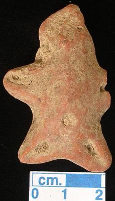| Description / विवरण | An archaic male terracotta figurine, red, pinched nose, short out stretched arms with one incised line, short out stretched stumpy legs with one incised line in each, punched eyes, punched navel, handmade. |