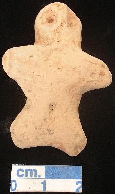 | Description / विवरण | An archaic terracotta human figurine with round head, pin hole eyes, pinched nose, short out stretched stumpy arms, pin hole navel, short wide bridged stumpy leg. |