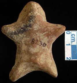 | Description / विवरण | A terracotta archaic human figurine with round head, pinched nose, punched eyes, slit mouth, out stretched stumpy arms, short wide bridged stumpy legs, phallus indicated, treated with red wash, handmade. |