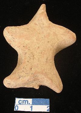 | Description / विवरण | A star shaped terracotta archaic human figurine, pinched nose and slit mouth, short out stretched stumpy arms with one incised lines in each, short wide bridged stumpy legs and treated with red wash. |