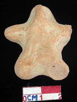 | Description / विवरण | A terracotta archaic human figurine with round head, pinched nose, out stretched stumpy arms of which left is damaged, wide bridged stumpy legs of which left is slightly damaged, treated with red wash, handmade. |
