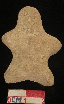| Description / विवरण | A terracotta archaic human figurine with round head, punched eyes, pinched nose and mouth, short out stretched stumpy arms, short wide bridged stumpy legs, dull red colour, handmade. |