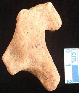 | Description / विवरण | A terracotta archaic human figurine, upper portion damaged, only middle body and right leg available and treated with red wash. |