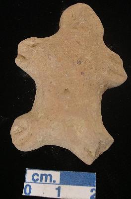| Description / विवरण | A terracotta archaic human figurine with tiny head, punched eyes, pinched nose and slit open mouth, short out stretched stumpy arms with two deep pin hole, short wide bridged stumpy legs and treated with dull red wash. |