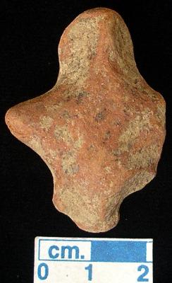 | Description / विवरण | A terracotta archaic human figurine with round head, red colour, pin hole eyes, pinched nose, short wide out stretched arms, both legs are broken, treated with red wash, handmade. |