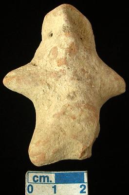 | Description / विवरण | An archaic human terracotta figurine, red, pinched nose, punched eyes, short out streached arms, short wide bridged stumpy legs, punched navel, handmade. |