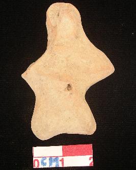 | Description / विवरण | An archaic human terracotta figurine, red, pinched nose and slit mouth, short out stretched arms and short wide legs, punched eyes , pinhole navel, handmade. |