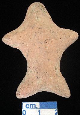 | Description / विवरण | A terracotta archaic sturdy human figurine with very small head, punched eyes with small slit open mouth, slim waist, chest unusual wide, short out stretched stumpy arms and short wide bridged stumpy legs and treated with red wash. |