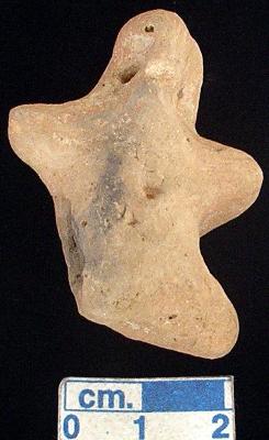 | Description / विवरण | An archaic human terracotta figurine, red, pinched nose, slit mouth, short out stretched arms, short wide bridged stumpy leg and left leg is broken, punched eyes, punched navel, handmade. |